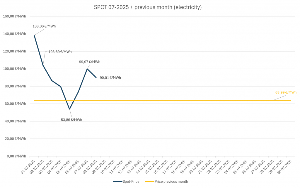 Der Monat Juli mittelt derzeit bei 9,0 ct/kWh.