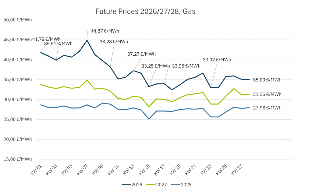 Das Frontjahr 2026 wird aktuell für ca. 3,5 ct/kWh gehandelt.