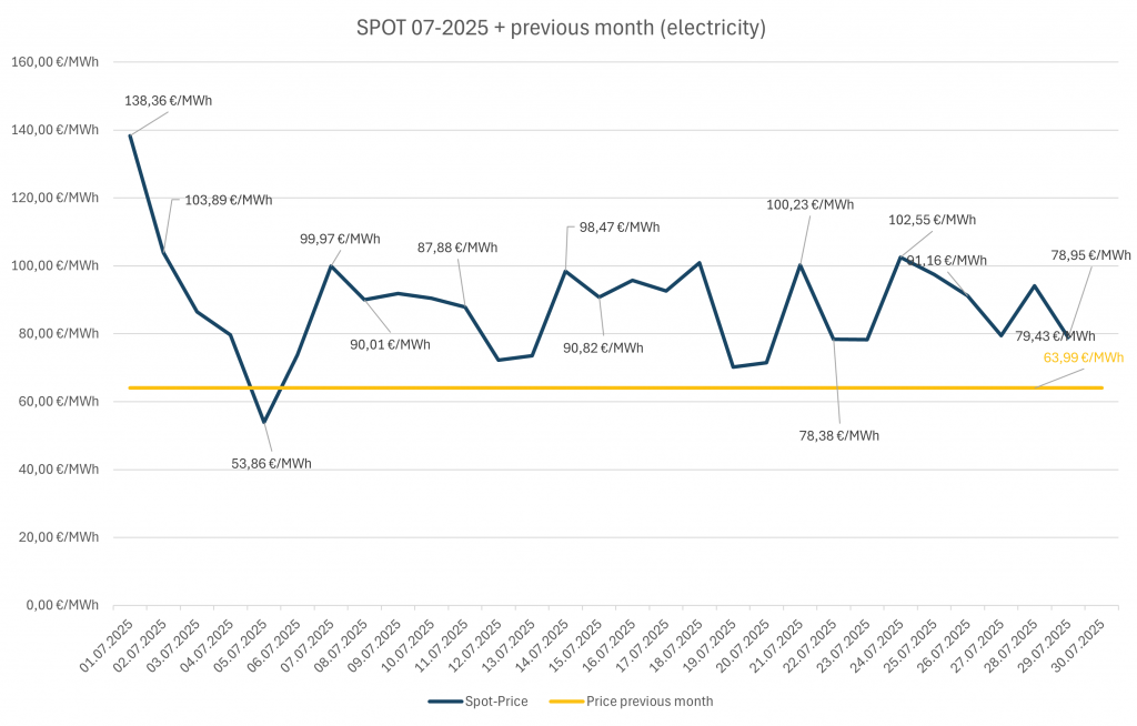 Der Monat Juli mittelt derzeit bei 8,8 ct/kWh.