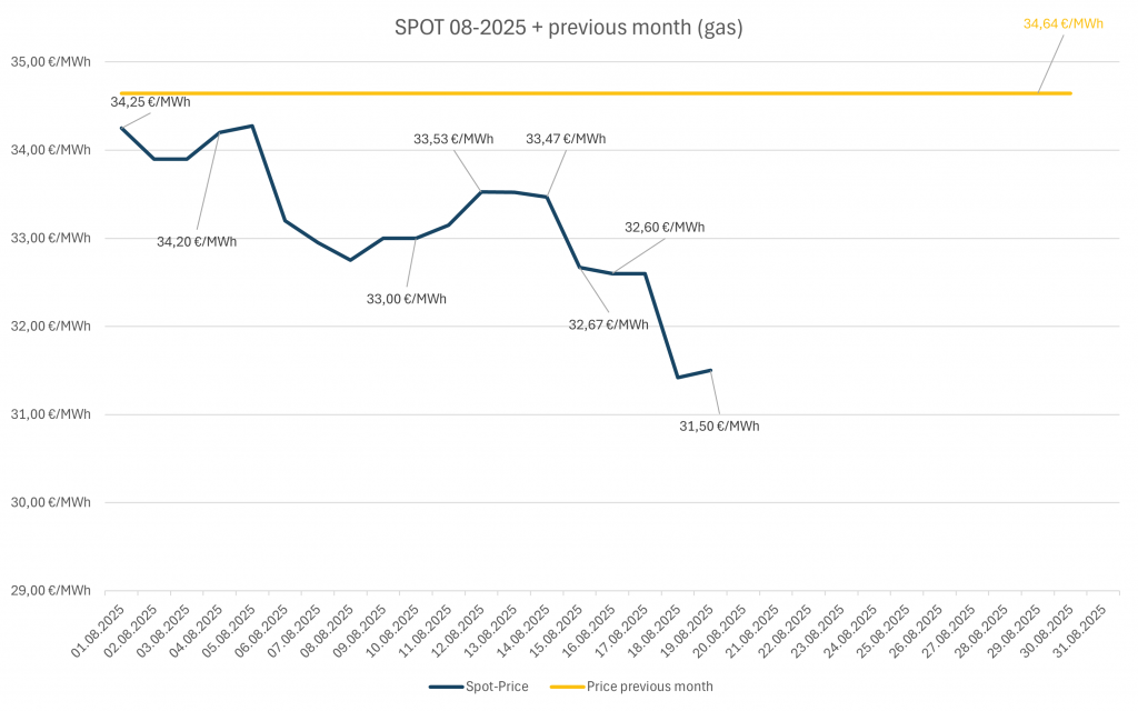 Spotpreis monatlich 2025 (Gas)