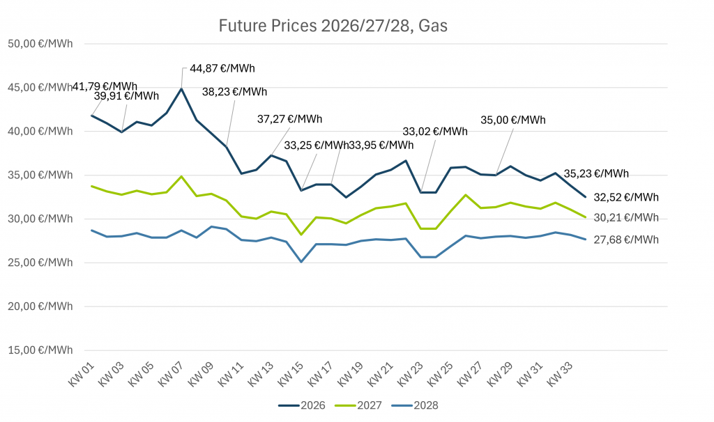 Future Gaspreise für 2026, 2027 und 2028