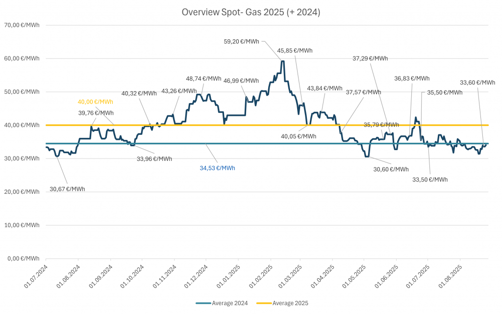 Spotpreis Gesamt 2025 (Gas) inkl. Rückblick