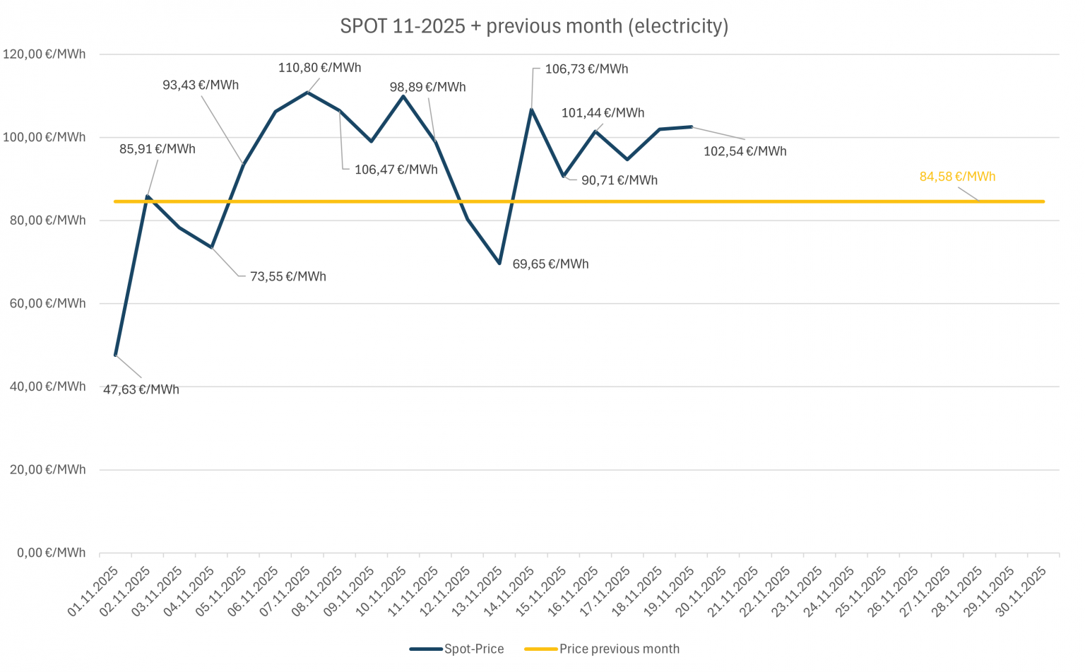 Der Monat November mittelt derzeit bei 9,2 ct/kWh.