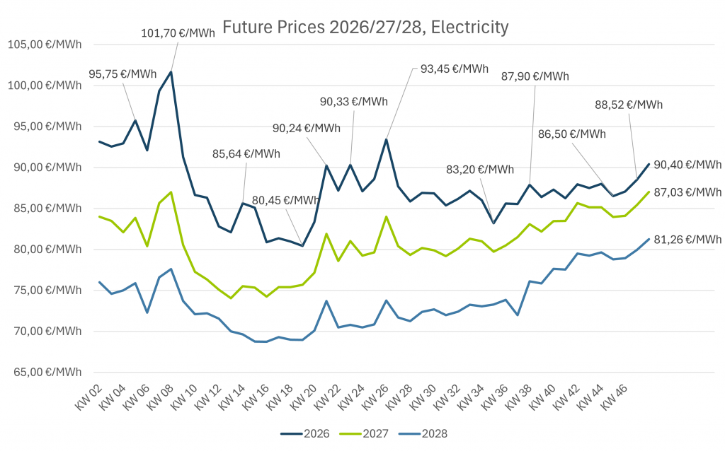 Das Frontjahr 2026 wird aktuell für ca. 3,1 ct/kWh gehandelt.